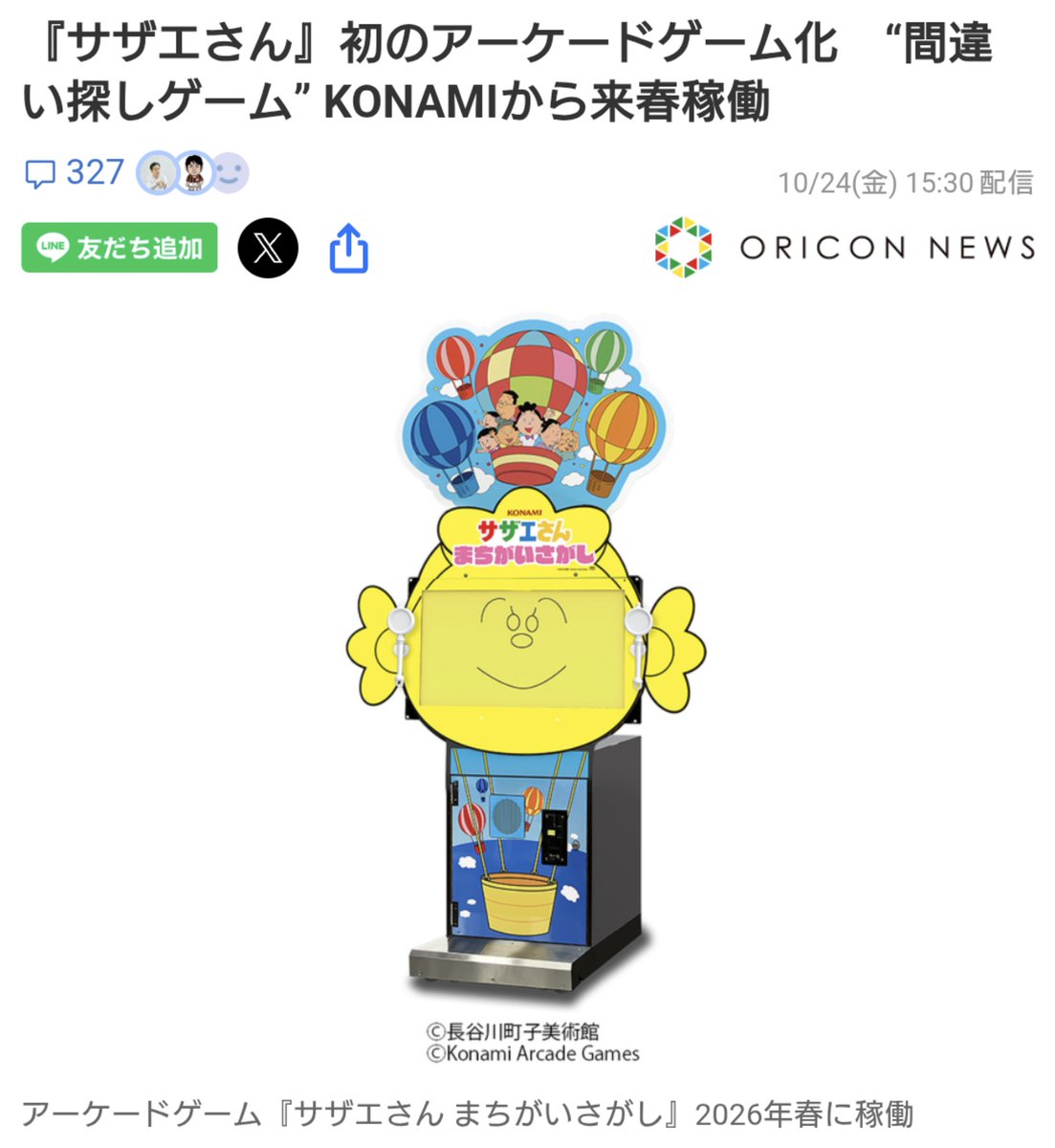 @othousand返信先:@ptx11e これですね。間違い探し 『サザエさん まちがいさがし』アニメ『サザエさん』がまさかの初アーケードゲーム化、来春稼働へ。問題は放送されたアニメの中から出題 | ゲーム・エンタメ最新情報のファミ通.com famitsu.com/article/202510… @famitsuから